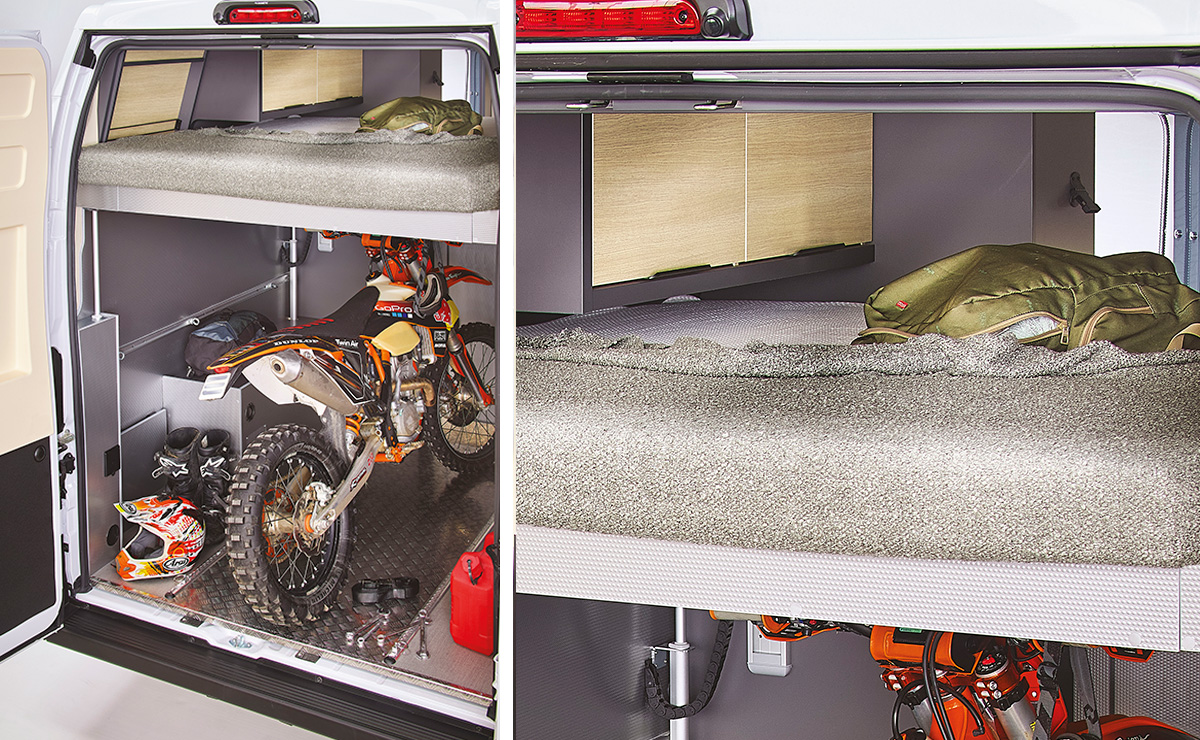 Stabilisieren und sichern Sie Ihr Motorrad oder Ihre Fahrräder mit den integrierten Befestigungsmöglichkeiten